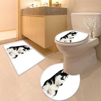 3 Piece Extended Bath Mat Set Cute Husky Puppy Non Slip