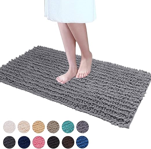 Itsoft Non Slip Shaggy Chenille Bath Mat For Bathroom Rug Water Absorbent Carpet 21 X 34 Inches Charcoal Gray