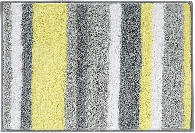 Hebe Microfiber Bathroom Rugs Non Slip Striped Bath Mats Rug For Bathroom Absorbent Step Out Shower Accent Rugs Machine Washable 18x26 Yellow Grey