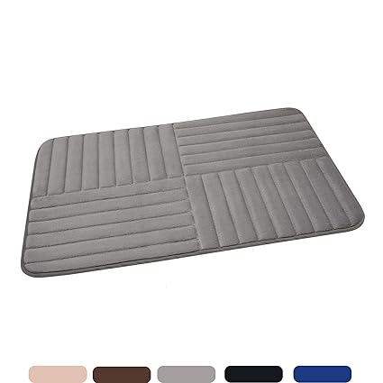 Genteele Memory Foam Bath Mat Non Slip Absorbent Super Cozy Velvet Bathroom Rug Carpet 17 Inches X 24 Inches Gray