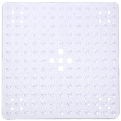 Sudagen Square Shower Mat Non Slip Bath Mat With Drain Hole Machine Washable For Shower Stalls 21 X 21 Inch Transparent Clear
