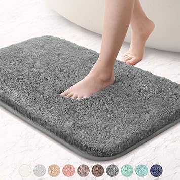 Vanzavanzu Bathroom Rugs 20 X32 Ultra Soft Absorbent Non Slip Fluffy Thick Microfiber Cozy Grey Bath Mat For Tub Shower Bathroom Floors Accessories