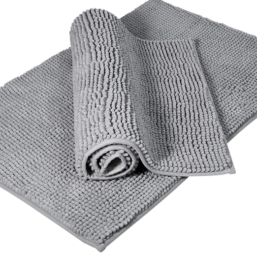 Lifewit 32 X20 Bath Mat Non Slip Microfiber Shaggy Chenille Bath Rugs Bathroom Shower Mats Rug Grey 2 Pack