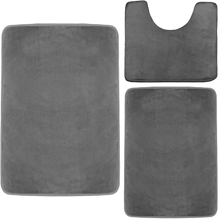 Clara Clark Memory Foam Bath Mat Ultra Soft Non Slip And Absorbent Bathroom Rug Gray Set Of 3 Small Large Contour