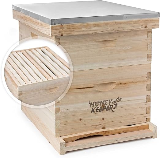 Honey Keeper Beehive 20 Frame Complete Box Kit 10 Deep And 10 Medium With Metal Roof For Langstroth Beekeeping