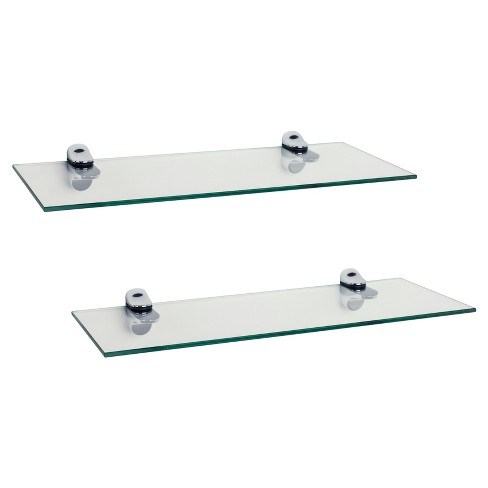 16 X 6 2pc Floating Glass Shelves With Chrome Brackets Clear Silver Danya B