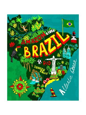 Illustrated Map Of Brazil Art Print By Daria I Art Com