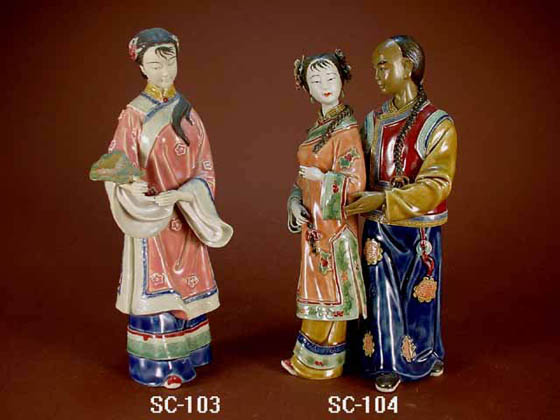 Chinese Figurines Dolls Exclusive Masterpiece Ceramic Women Sculpture Pair