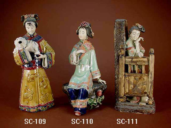 Shiwan Chinese Ceramic Porcelain Dolls Figurines Three Sister Set