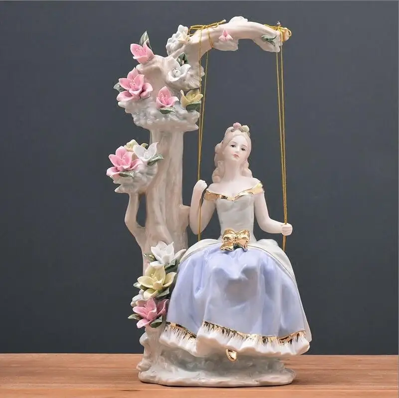 Western Female Home Decor Eurpoe High Grade Beauty Ceramic Figurines Art Crafts Coffee Bar Porcelain Ornament Wedding Decoration