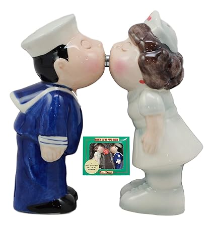 Ebros Sailor Kissing Nurse Salt And Pepper Shakers Set Ceramic Figurines Party Kitchen Tabletop Decor Collectible