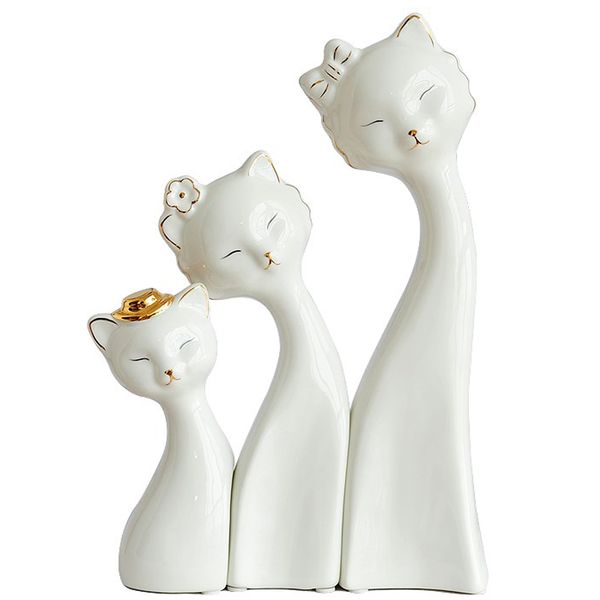 Home Decoration Europe Ceramic Cat Miniature Figurines Cat Family Ornaments Desktop Crafts Living Room Decor Wedding Gifts Novelty Items Wholesale