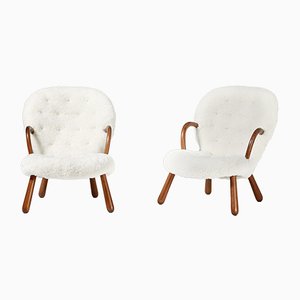 Mid Century Sheepskin Clamshell Chairs By Philip Arctander For Vik Blindheim 1950s Set Of 2