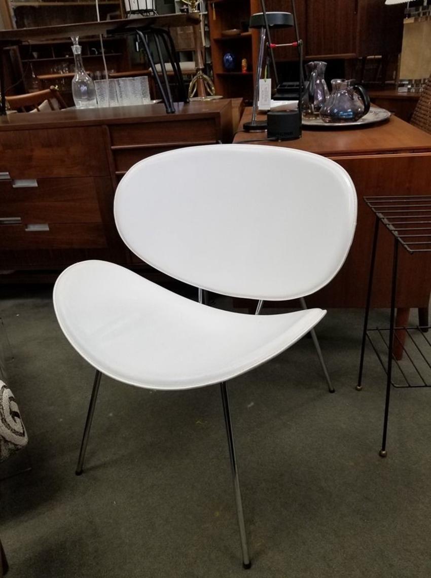 Modern White Leather Clamshell Chair From Peg Leg Vintage Of Beltsville Md