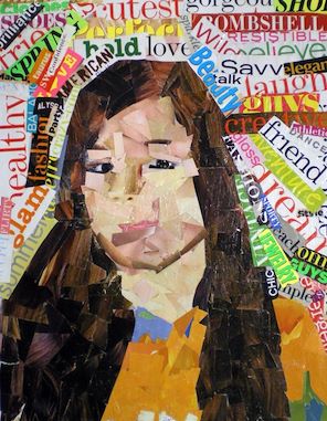 Torn Magazine Paper Collage Portrait Painting With Paper