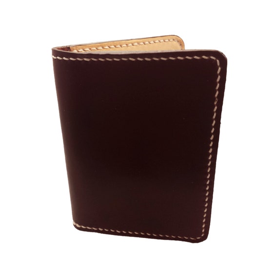 Burgundy Handstitched Horween Shell Cordovan Leather Card Holder