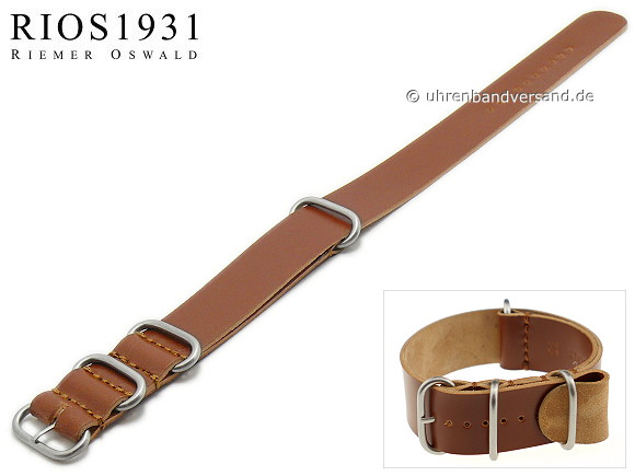 Watch Strap Nato Prague 20mm Brown Shell Cordovan Leather Military Look One Piece Strap By Rios