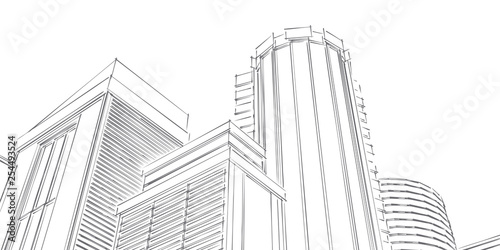 Illustration Of Sketch Drawing Black Contour Of Skyline