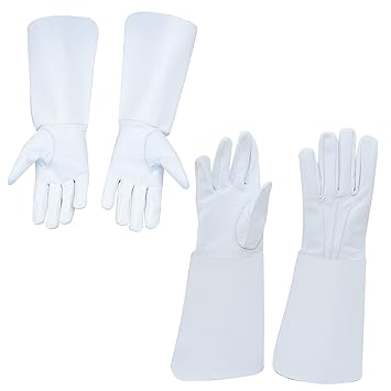 Masonic Piper Drummer Leather Gauntlets Gloves White Soft Leather Knight Templar