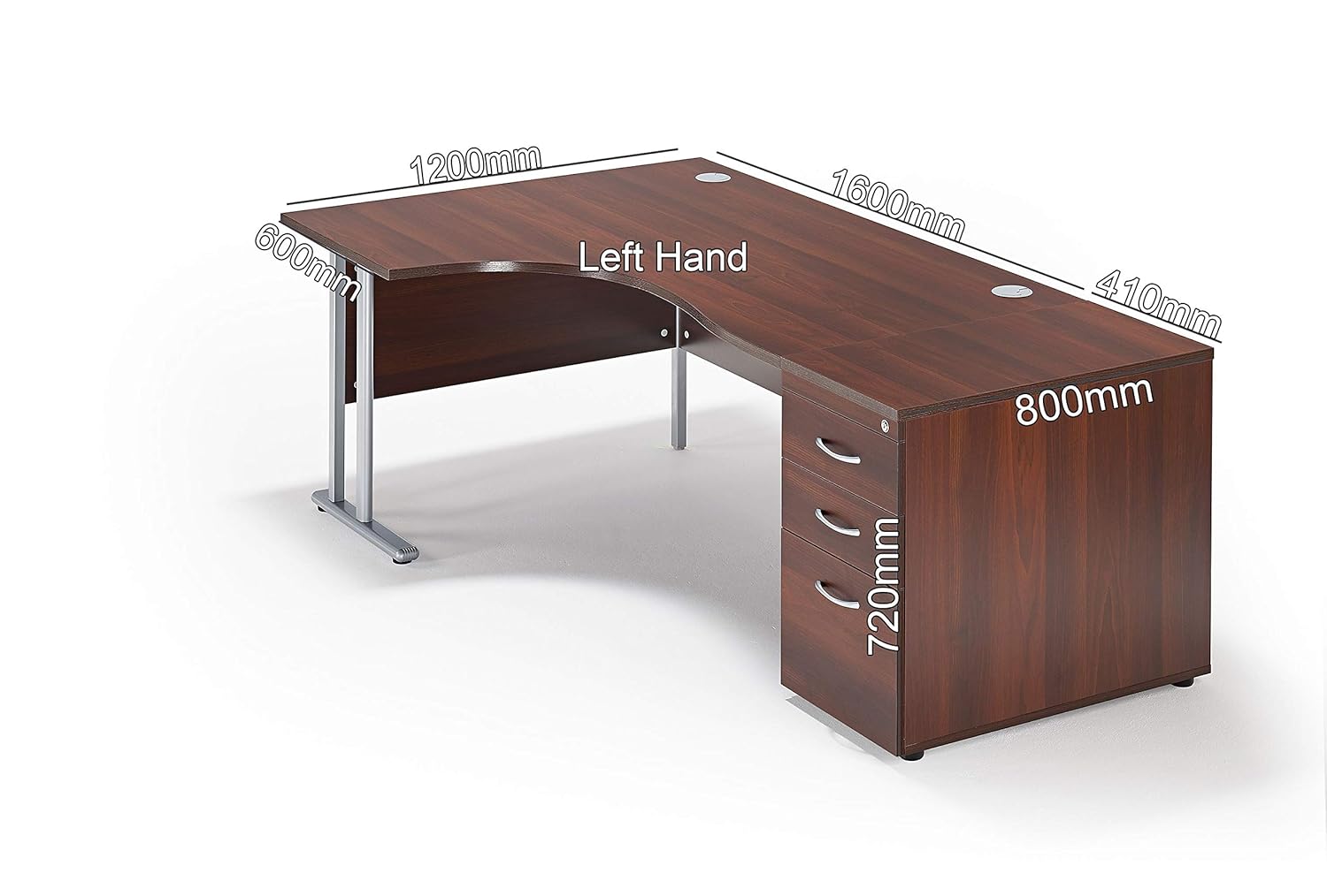 Walnut Curved Executive Office Cantilever Workstation And Desk End 800mm Deep Pedestal Bundle