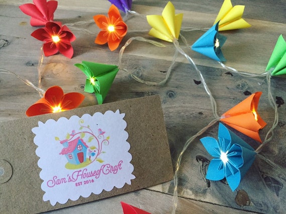 Origami Flowers Led 10 Bulb Battery Operated String Lights