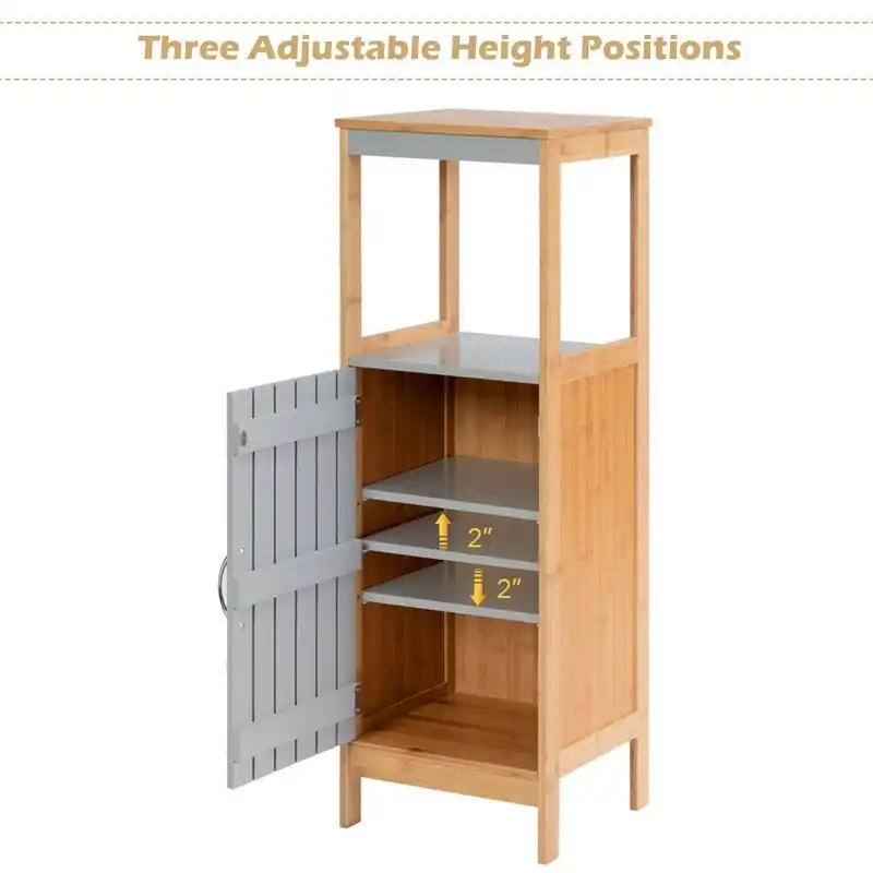 Bathroom Floor Cabinet Freestanding Single Door Bamboo 3 Tier Storage Modern Concise Design Storage Cabinet For Bathroom Hw60392
