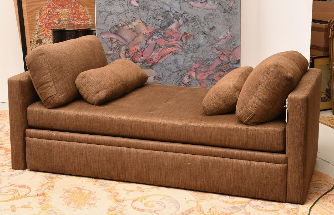 A Brown Plush Upholstered Two Seat Sleeper Sofa By Avery