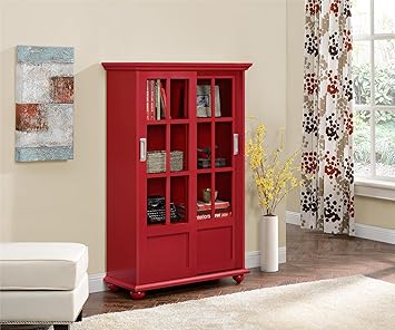 Ameriwood Home Aaron Lane Bookcase With Sliding Glass Doors Red