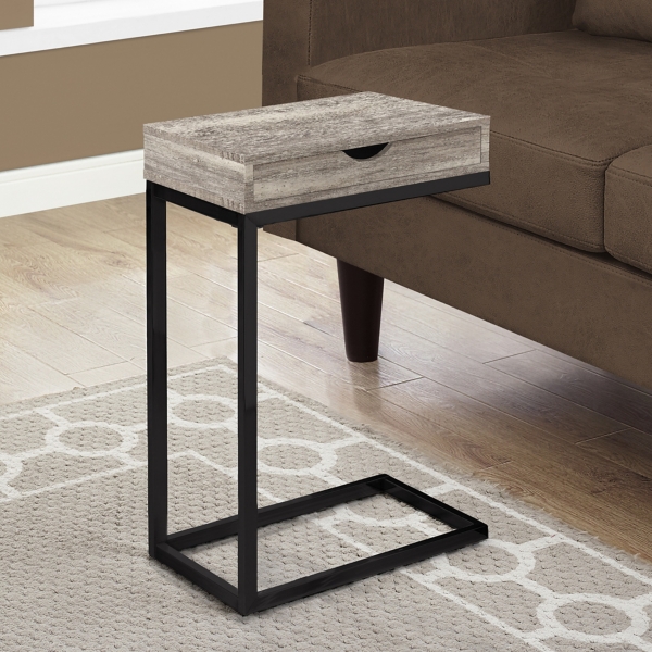 Taupe Mason Wood C Table With Drawer Metal Base