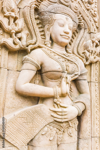 Apsara Carvings Statue On The Wall Of Cambodian Art