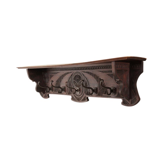 Antique Victorian Carved Mahogany Coat Rack Wall Shelf With Hooks