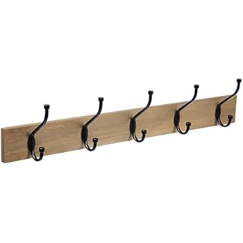 Amazonbasics Wall Mounted Farmhouse Coat Rack 5 Standard Hooks Light Walnut