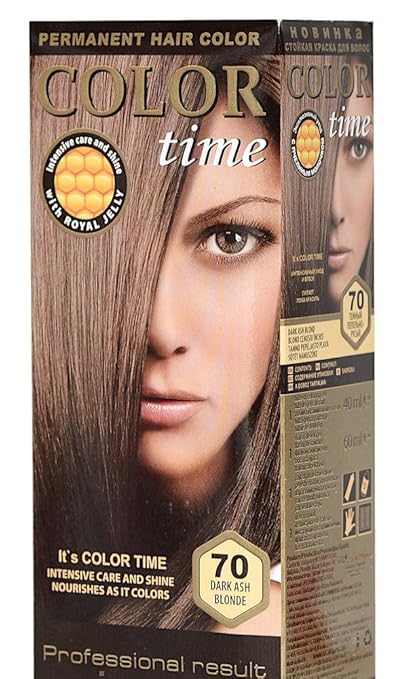 Color Time Permanent Hair Dye With Royal Jelly Color Dark Ash Blonde 70