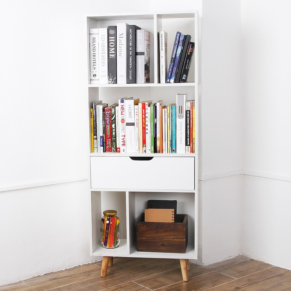 Qf Greenvale Bookcase Storage Shelf L77 With 5 Cubes Shelf And 1 Drawer Diy Wooden Book Shelf