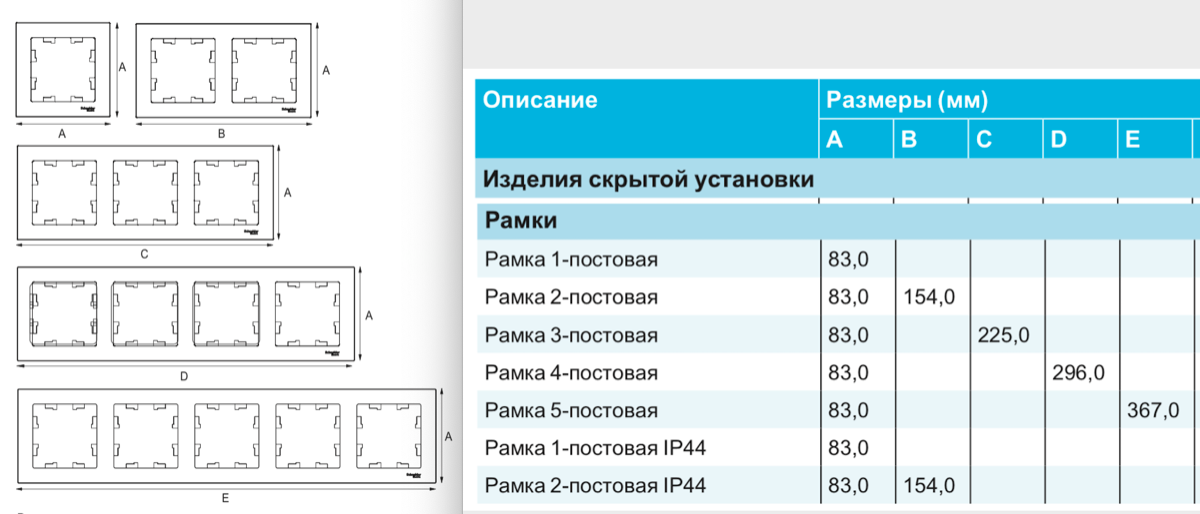 Razmery Ramok Schneider Electric Serii Atlas Design