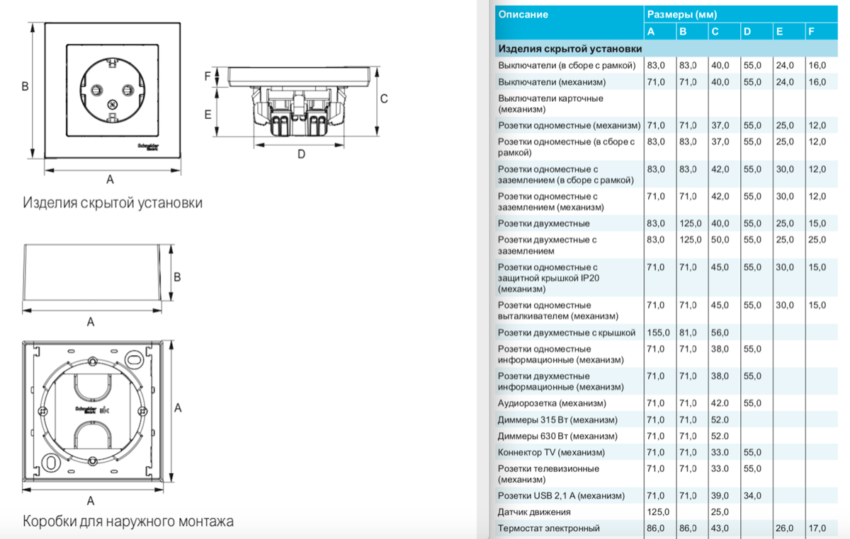 Razmery Rozetok Vyklyuchatelej Dimmerov Datchika Dvizheniya