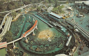 Details About Disneyland Postcard Submarine Lagoon Aerial View Red Monorail Autopia 1 342