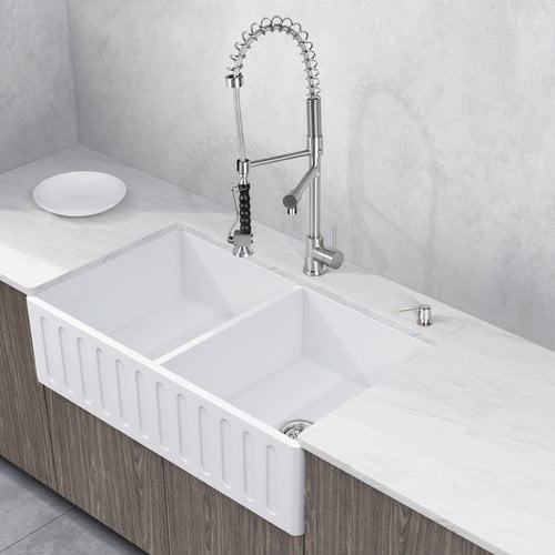 Vigo 36 Matte Stone Double Bowl Farmhouse Sink Set With Zurich Stainless Steel Faucet Walmart Com