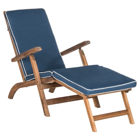 Palmdale Folding Lounge Chair Teak Brown Navy Safavieh