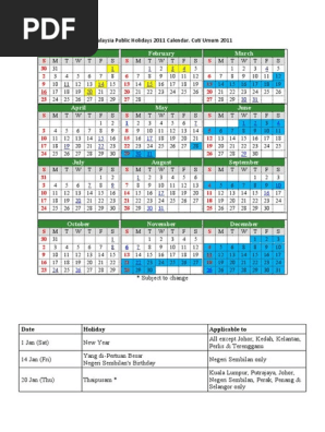 Malaysia Public Holidays 2011 Calendar