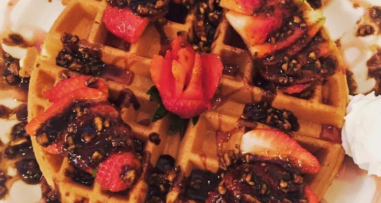 Waffle With Caramelized Pecans And Strawberries Picture Of