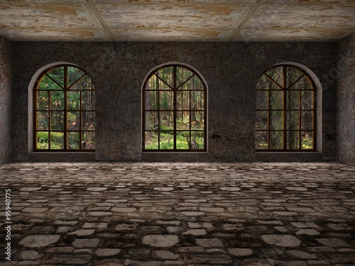 Fotografiya Empty Loft Room With Arc Windows 3d Rendering 3 Ot Hemul75 On Envato Elements