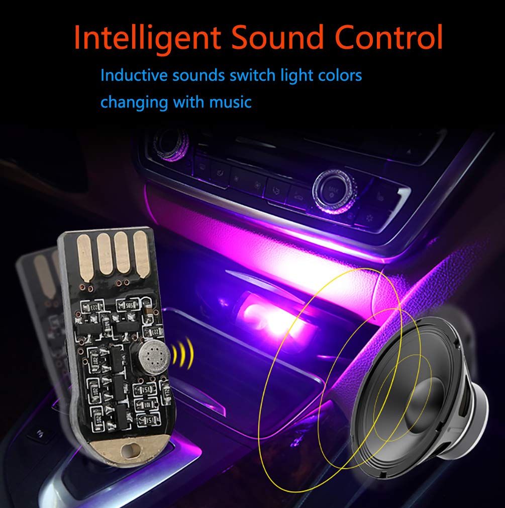 2 Pack Portable Usb Car Intelligent Sound Control Interior Atmosphere Lamp Night Light Led Decoration Light For Automotive Decorative Lighting