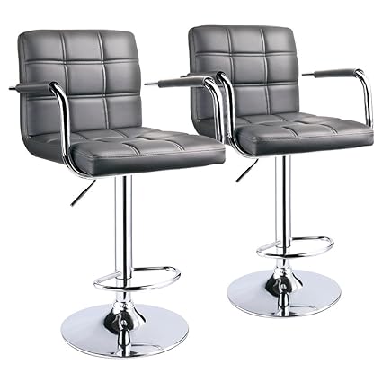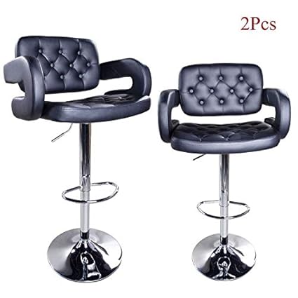 Noroomaknet Noroomaknet Adjustable High Bar Chair Set Of 2 Leather Bar Stools With Arm Rest And Back Sets Disk Armrest Square Backrest Button Design