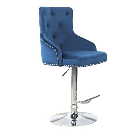 Dmf Velvet Bar Stools Chairs With High Back Arms Height Adjustable In Kitchen Dining Counter Room Fabric Barstools Mazarine Blue