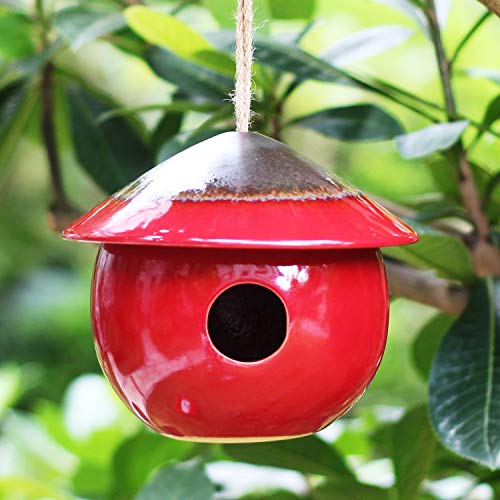 Tenforie Ceramic Birdhouses Bird Hut Hanging Hummingbird Nest For Outdoor Red