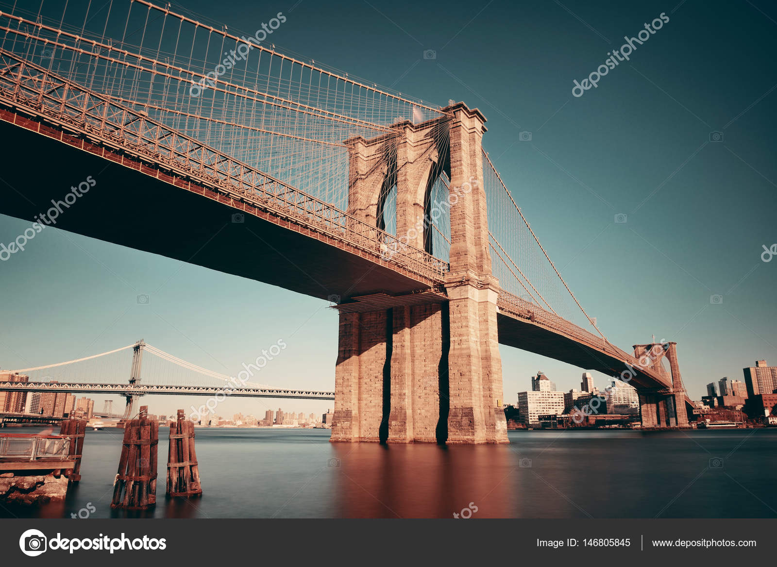 Brooklyn Bridge Waterfront Downtown Manhattan New York City