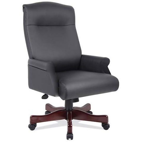 Executive Black Leather Roll Arm Desk Chair With English Cherry Base