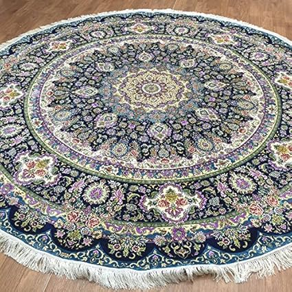 Luxury Large Round Rugs Silk Traditional Area Rugs Navy Circle Rugs Persian Area Rugs 8x8 Circle Rug Living Room Round Shape Rugs Silk Low Pile Rug