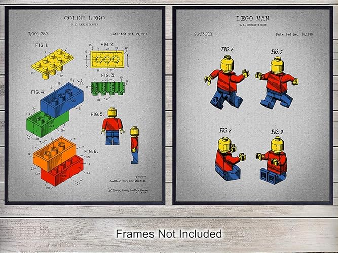 Legos And Figures Patent Art Prints Contemporary Vintage Wall Art Poster Set Chic Rustic Home Decor For Boys Room Kids Room Playroom Rec Room